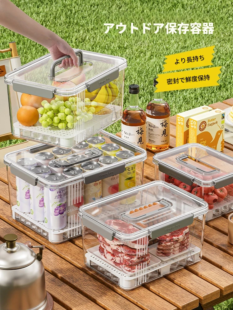 星優アウトドアキャンピング冷蔵保鮮ボックス - 食品グレードの透明密封収納ボックス、便利な蓋付きで食材を新鮮に保つ!整理整頓も簡単に。