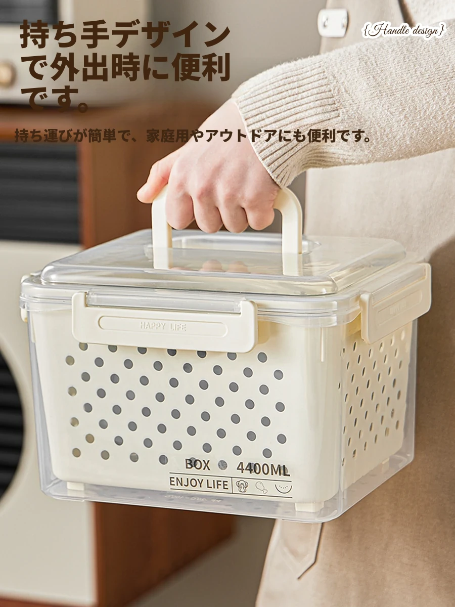 冷凍保存も安心!食品級手提保鮮ボックス - 冷蔵庫専用収納ケースで、果物や野菜を新鮮に保つ密封・水切り機能付き!キッチン整理の必需品!