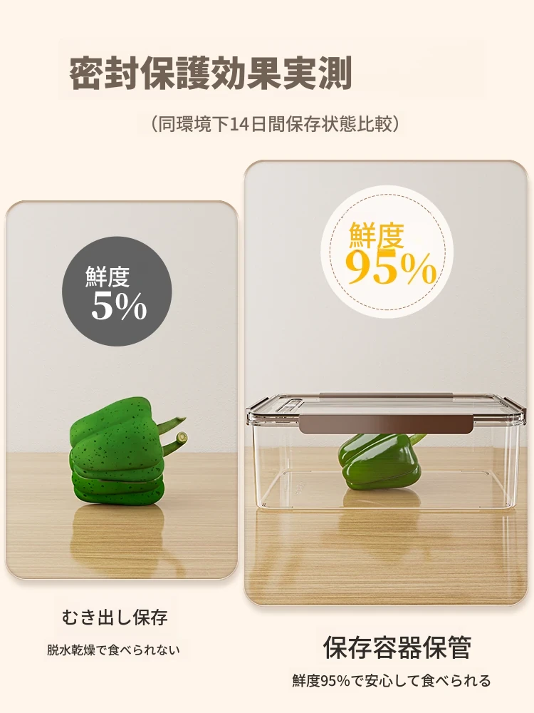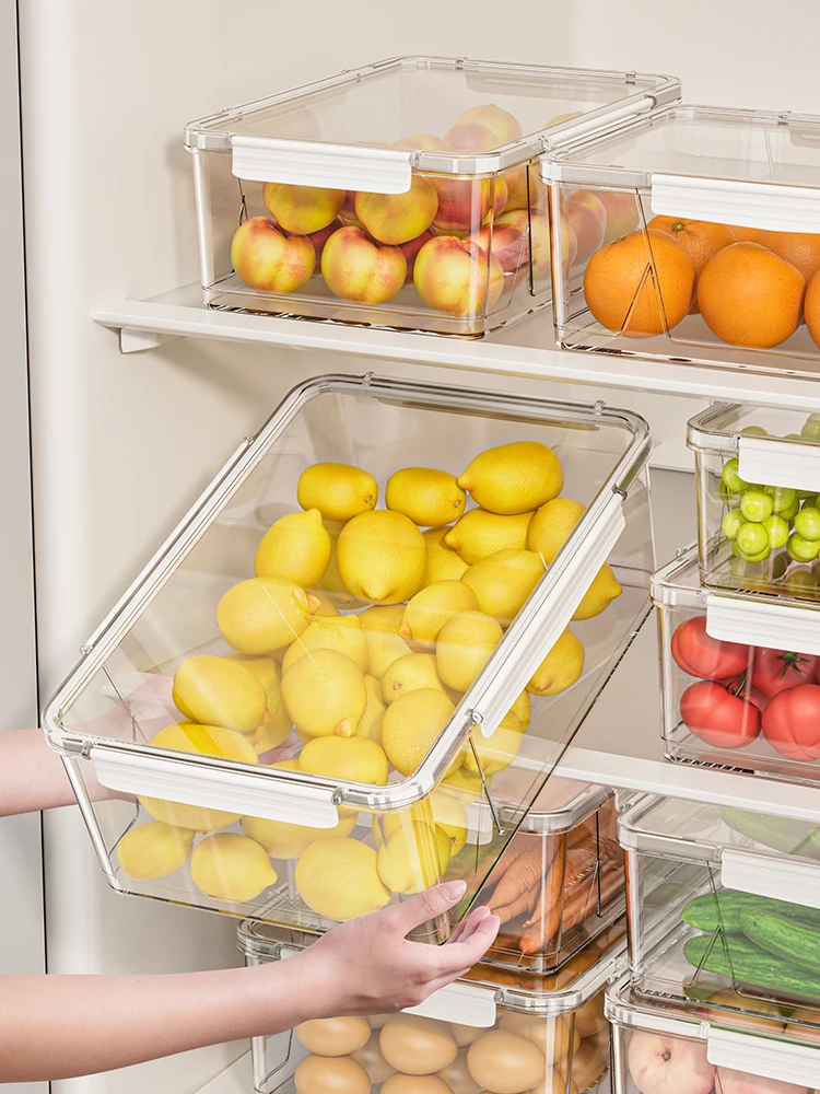 大容量フードグレード冷蔵庫専用保存ボックス!フルーツや漬物の整理に最適な透明密封冷凍ボックス。美味しさをキープし、冷蔵庫をスッキリ整頓!