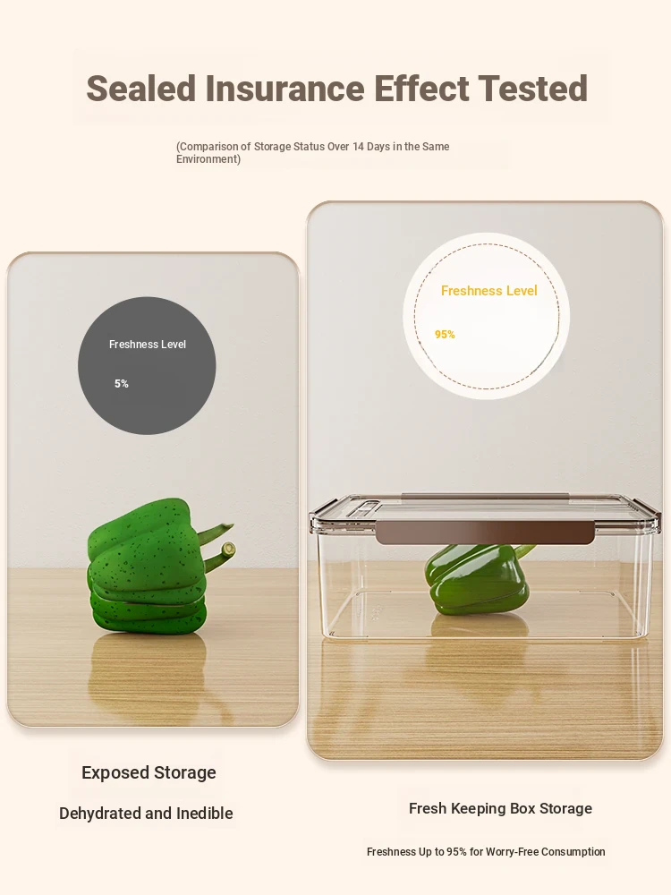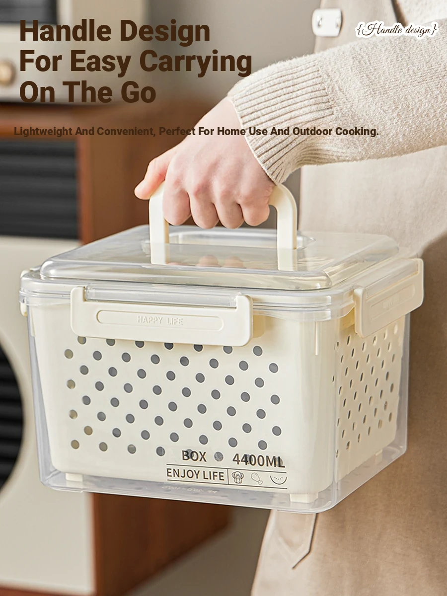 Premium Food-Grade Portable Freshness Box - Refrigerator Storage Container for Freezing and Sealing, Ideal for Fruits and Vegetables with Drainage Feature, Perfect for Your Kitchen!
