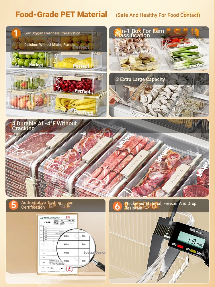 Large Capacity Food Storage Containers - Premium Refrigerator Organizer for Fruits and Pickles, Transparent Sealed Freezer Boxes, Perfect for Freshness and Organization