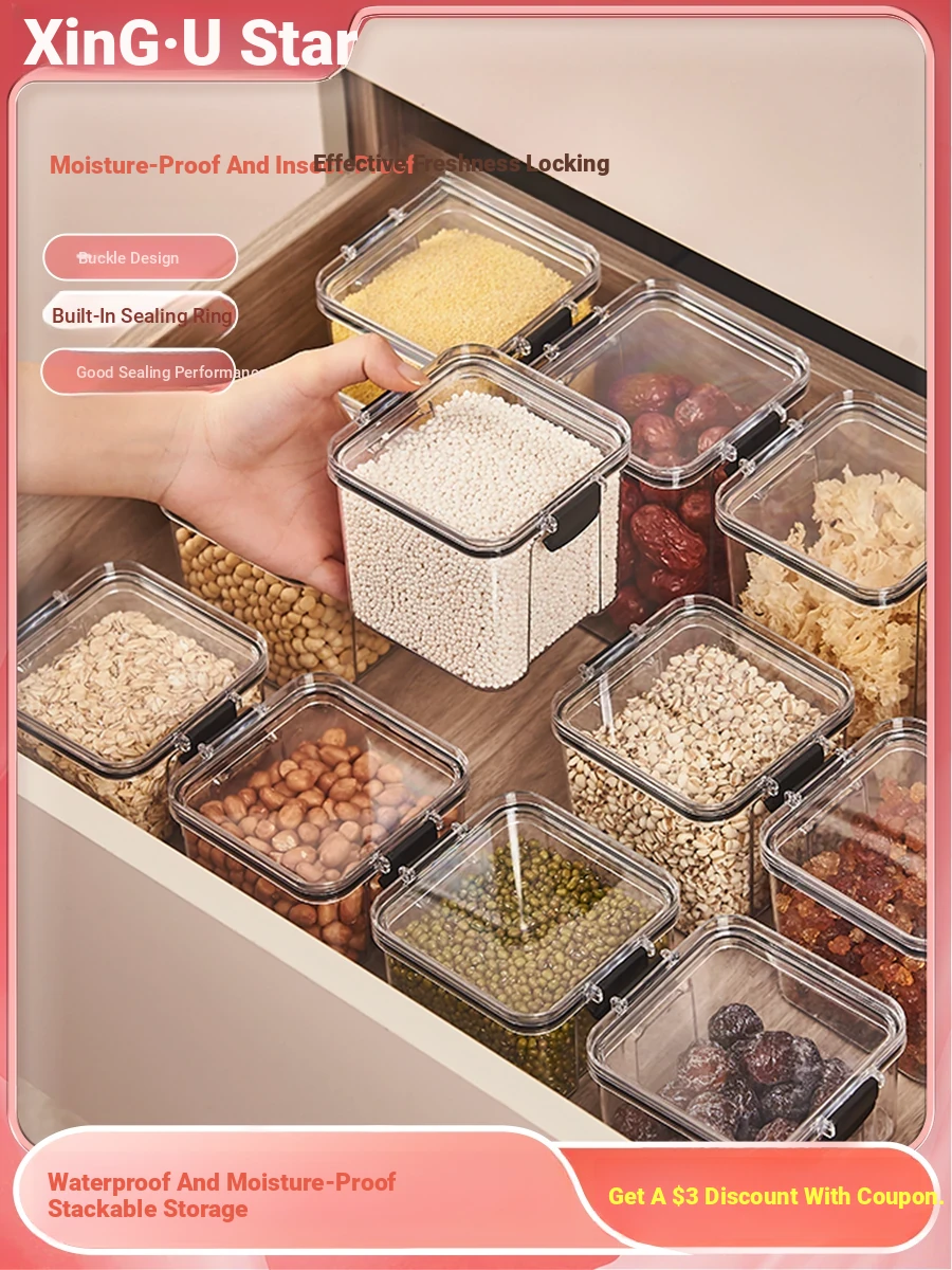 Transparent Food-Grade Storage Canister for Grains and Snacks - Kitchen Organizer for Dried Foods and Tea - Airtight Sealed Jar for Freshness and Convenience